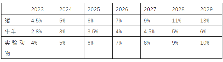 基于渗透率信息,我们对中国动物市场RFID标签出货量数据评估如下: