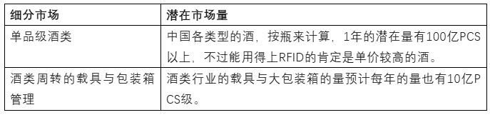 以UHF RFID方案为评估维度,我们对于酒类的这两个市场的渗透率进行评估,结果如下:
