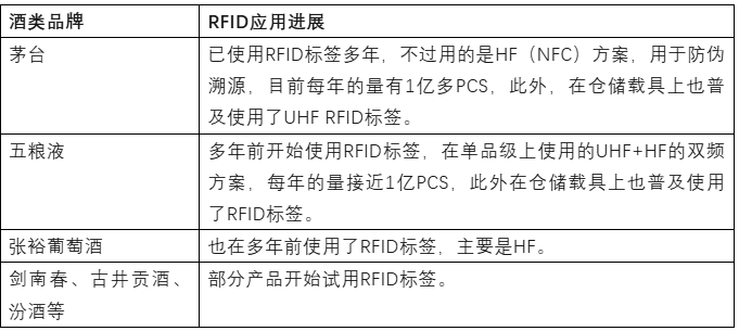 国内应用市场中,酒类是RFID一个重要的应用场景,除了头部的酒企已经在单品级的包装上使用了RFID标签之外,在酒类的仓储与物流环节的载具上,RFID标签的使用也比较普及了。